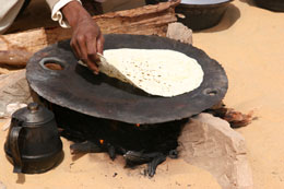 Because it was so difficult to carry all the fresh fruits and vegetables with us in the desert our food was so simple and more tasty. Rice and flour was easier to carry. Maybe this is the reason why we have a variety of bread, which was made freshly every day.The classical fetir was made with flour, water and little salt in the fire. It was used to put it in the soup or hot milk in the morning. Moraras, like a pancake, are made from flour, water and samna (a kind of fat) and sugar or honey.